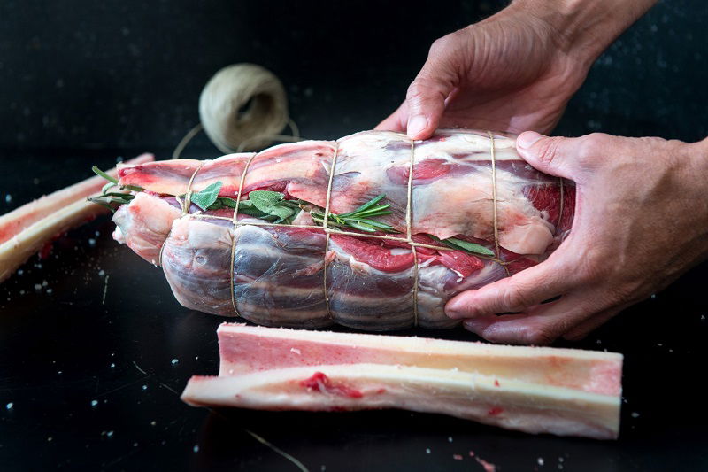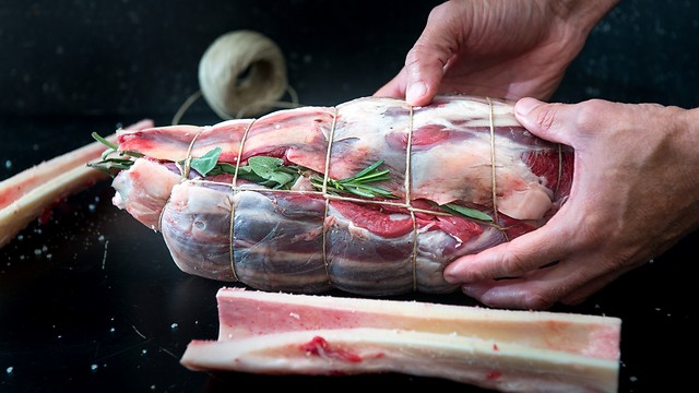 ממקמים את מח העצם במרכז הנתח. מתבלים את המח במלח ופלפל שחור גרוס, ומניחים מעל 3 ענפי רוזמרין ו-4 ענפי מרווה. קושרים את הנתח באמצעות חוט קצבים (אפשר להגיע לקצב עם עשבי התבלין, ולבקש שיקשור עבורכם).